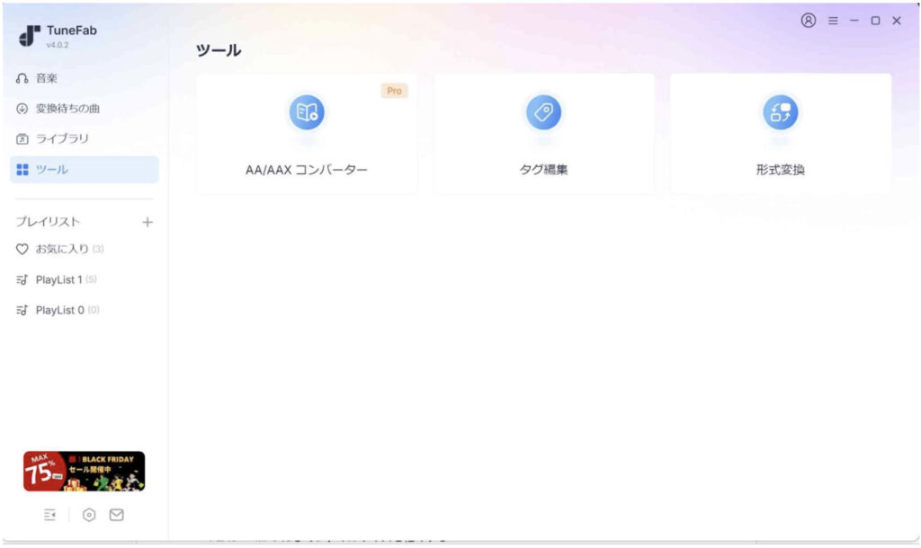 TuneFa音楽変換Ver4.0では、特に変換機能の強化と、「ライブラリ」・「ツール」の二つの機能の拡張がメインです。これにより、音楽のダウンロードから管理、編集までが一貫して行えるようになりました。